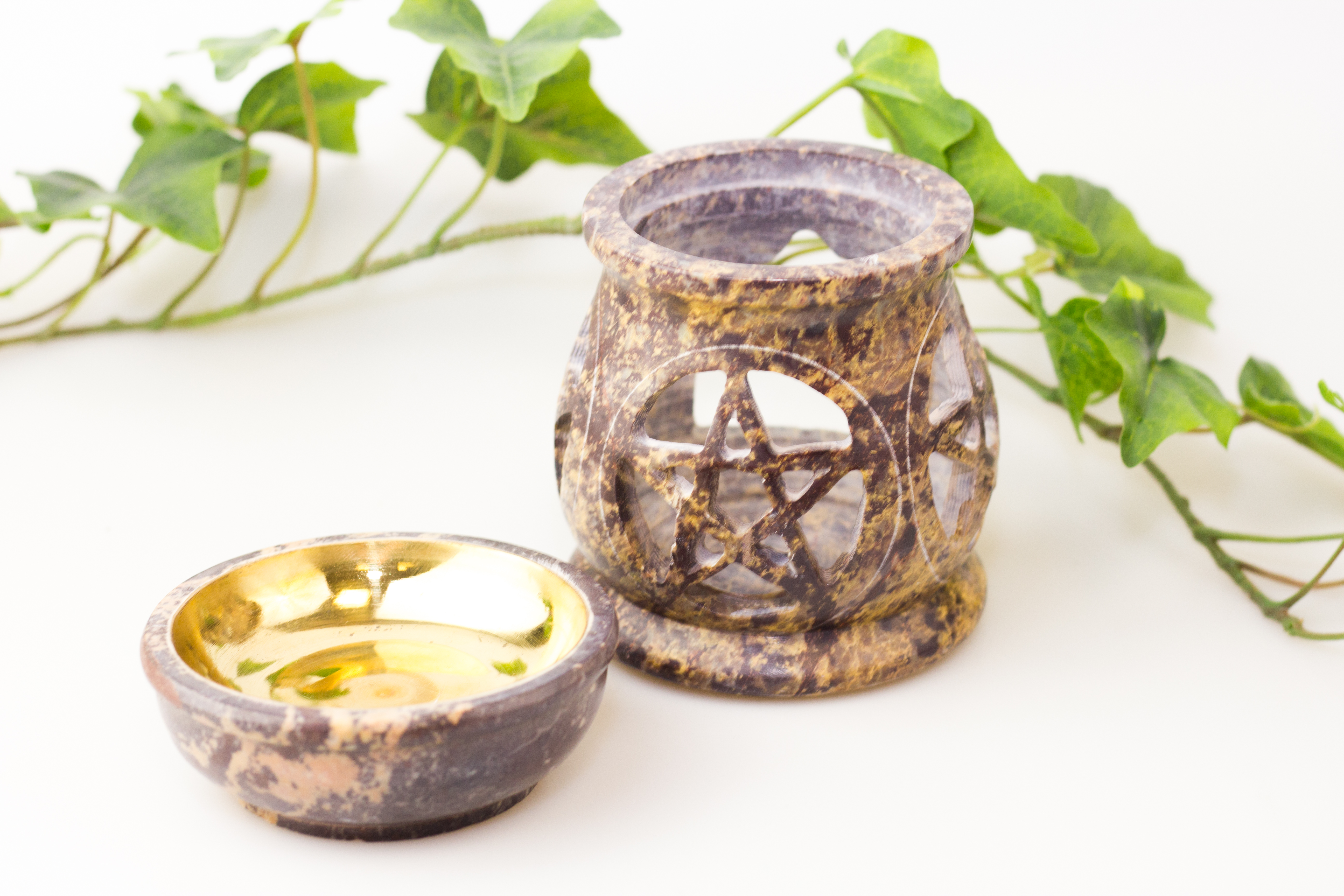 Schöne Duftlampe aus Speckstein und einem Pentagramm. Man kann diese Lampe auch zum Räuchern verwenden.