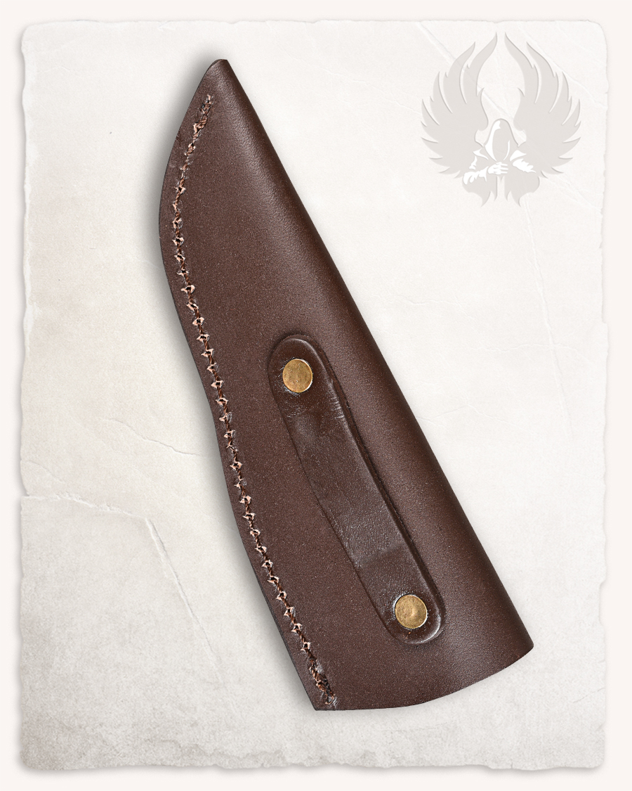 Das Messer liegt gut in der Hand und die dazugehörige Lederscheide kann am Gürtel befestigt werden.