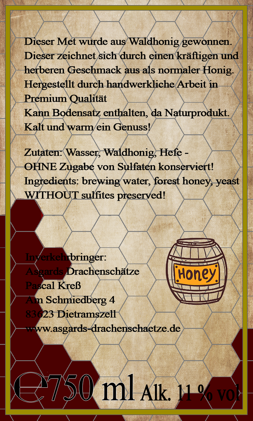 Produktinformationen "Div. Gebinde Waldhonig Met / Asgards Drachenschätze Honigwein aus Waldhonig, 11% vol."