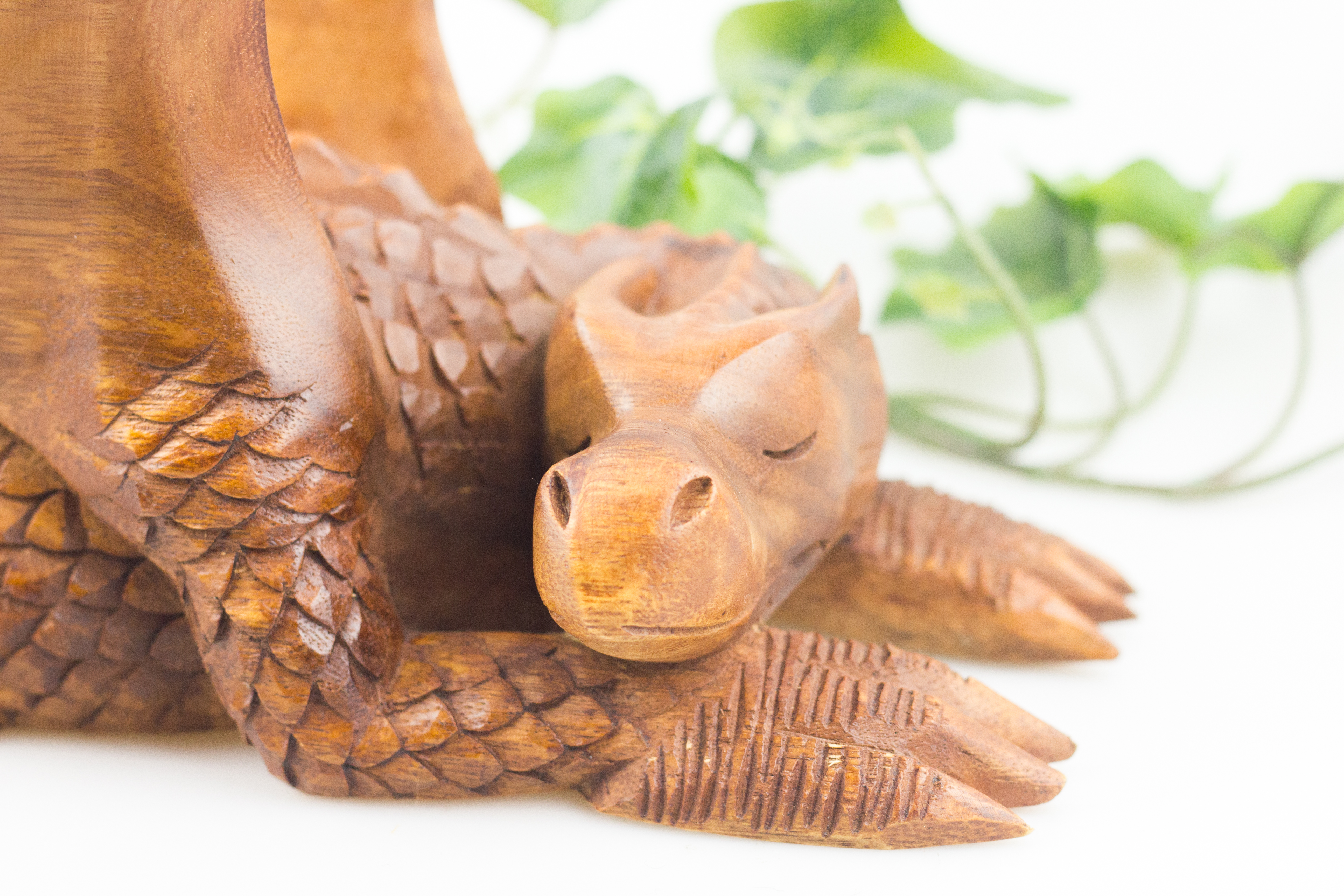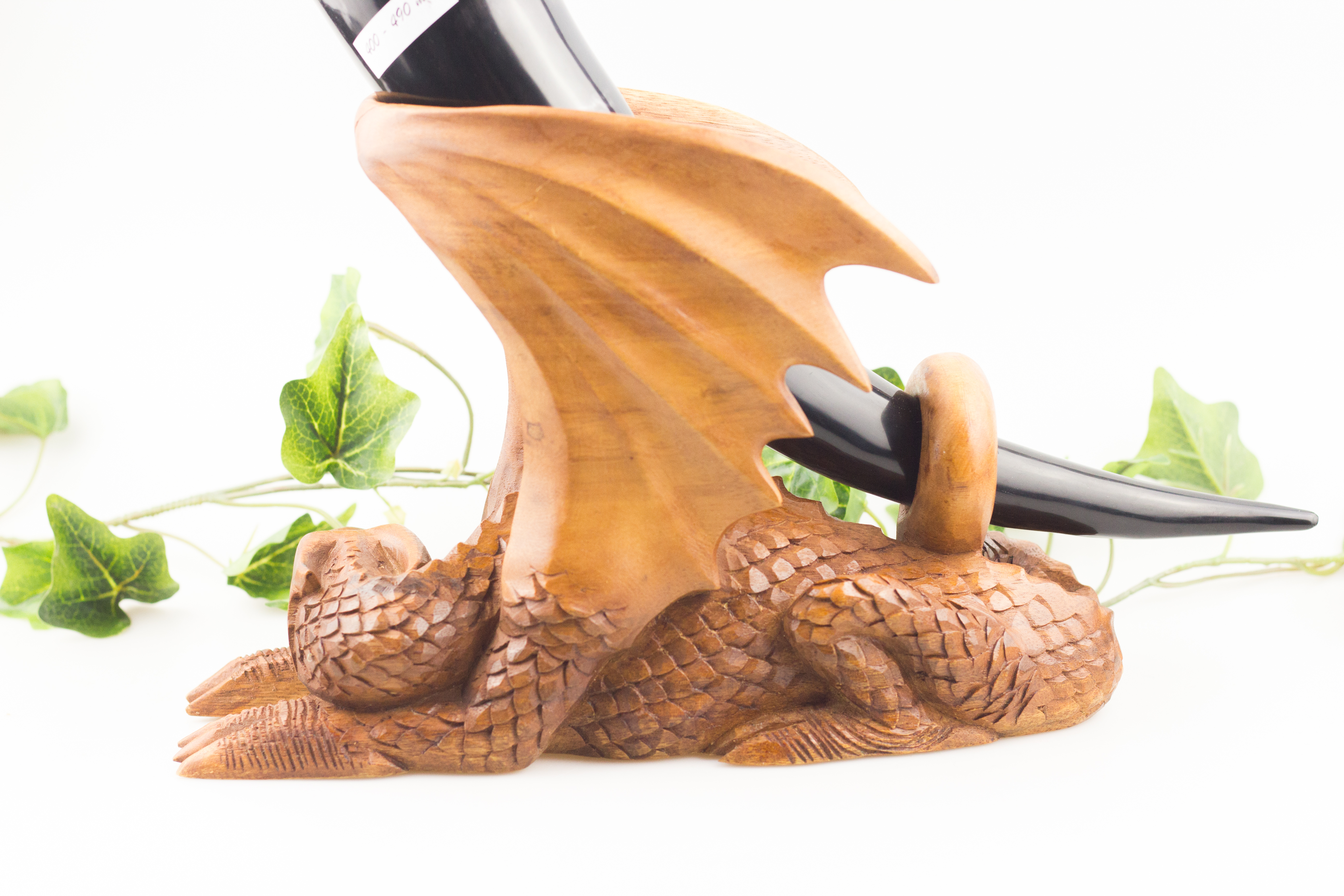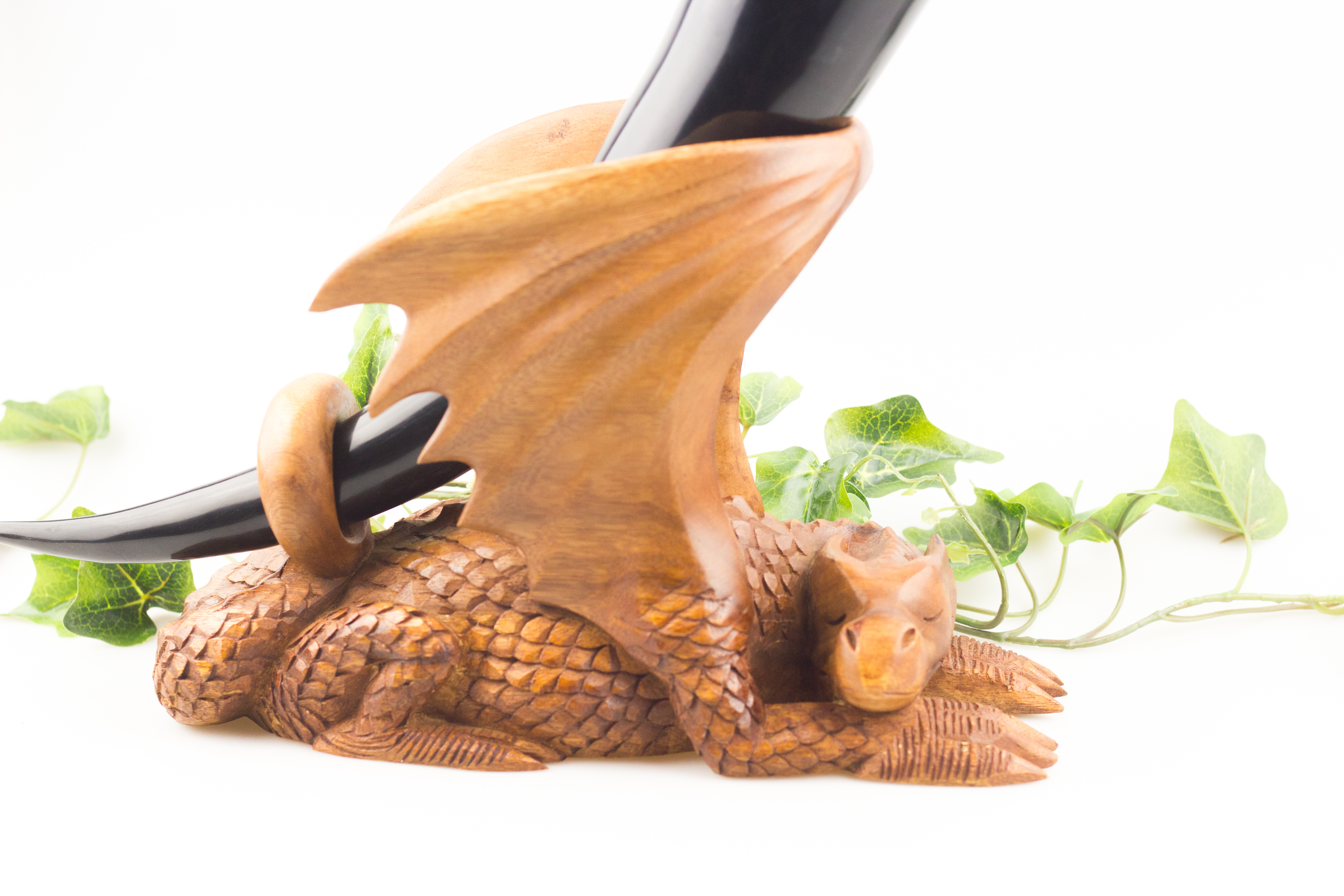 Großer Trinkhornständer - SLEEPY DRAGON - 30 cm - Drachen Trinkhornhalter - Handarbeit aus Holz