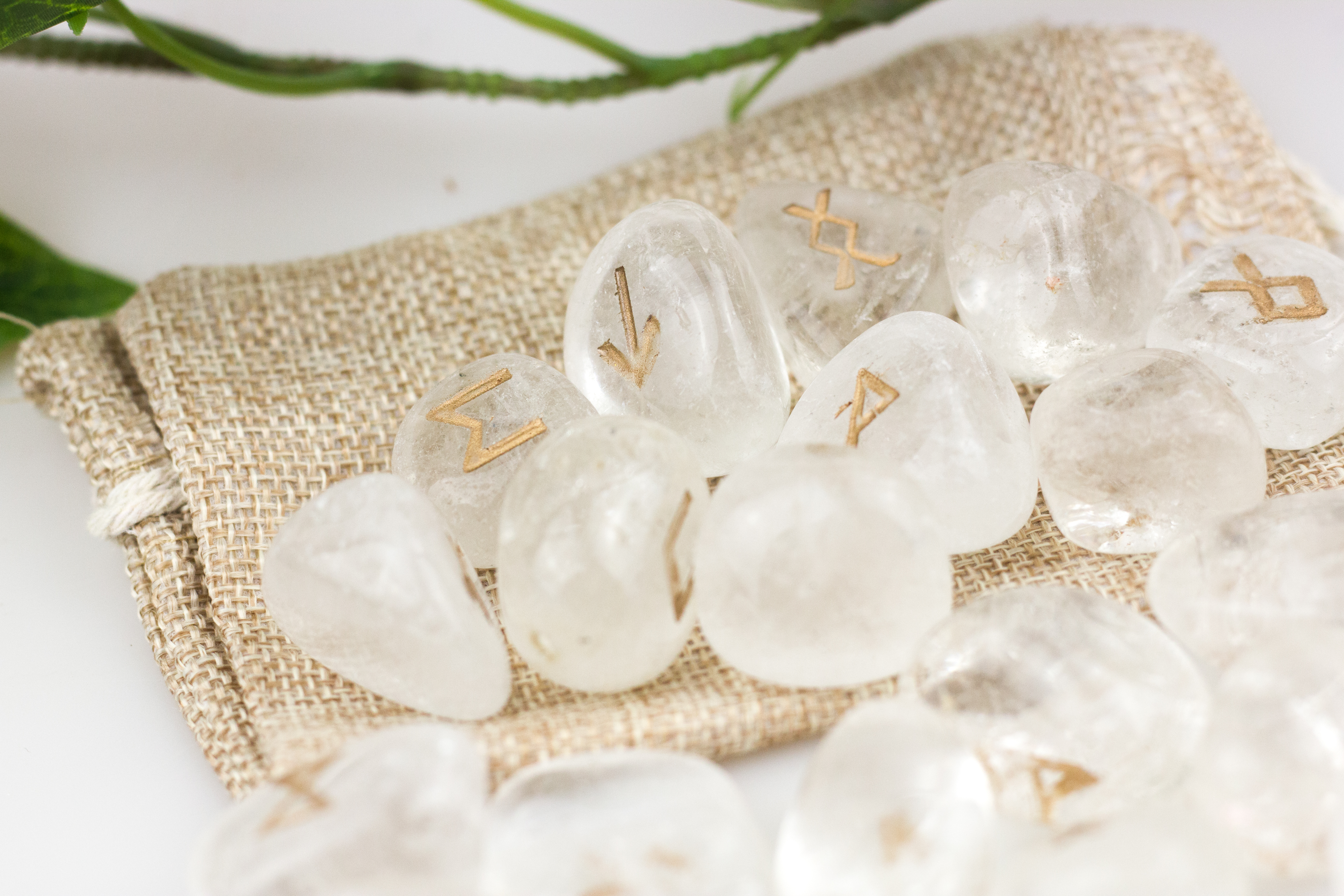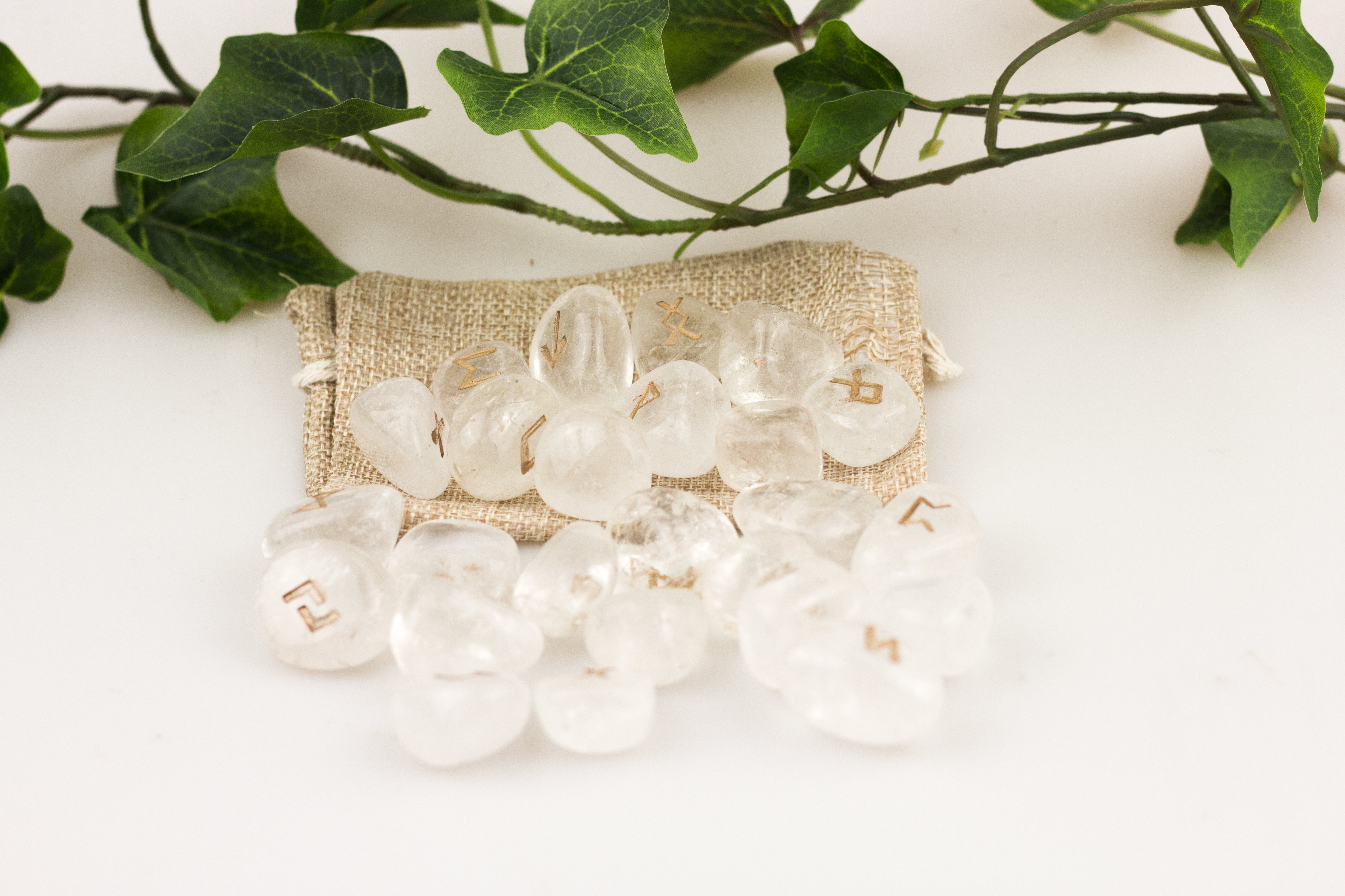 Super schönes Runenorakel bestehend aus 25 Bergkristall Steinen.
