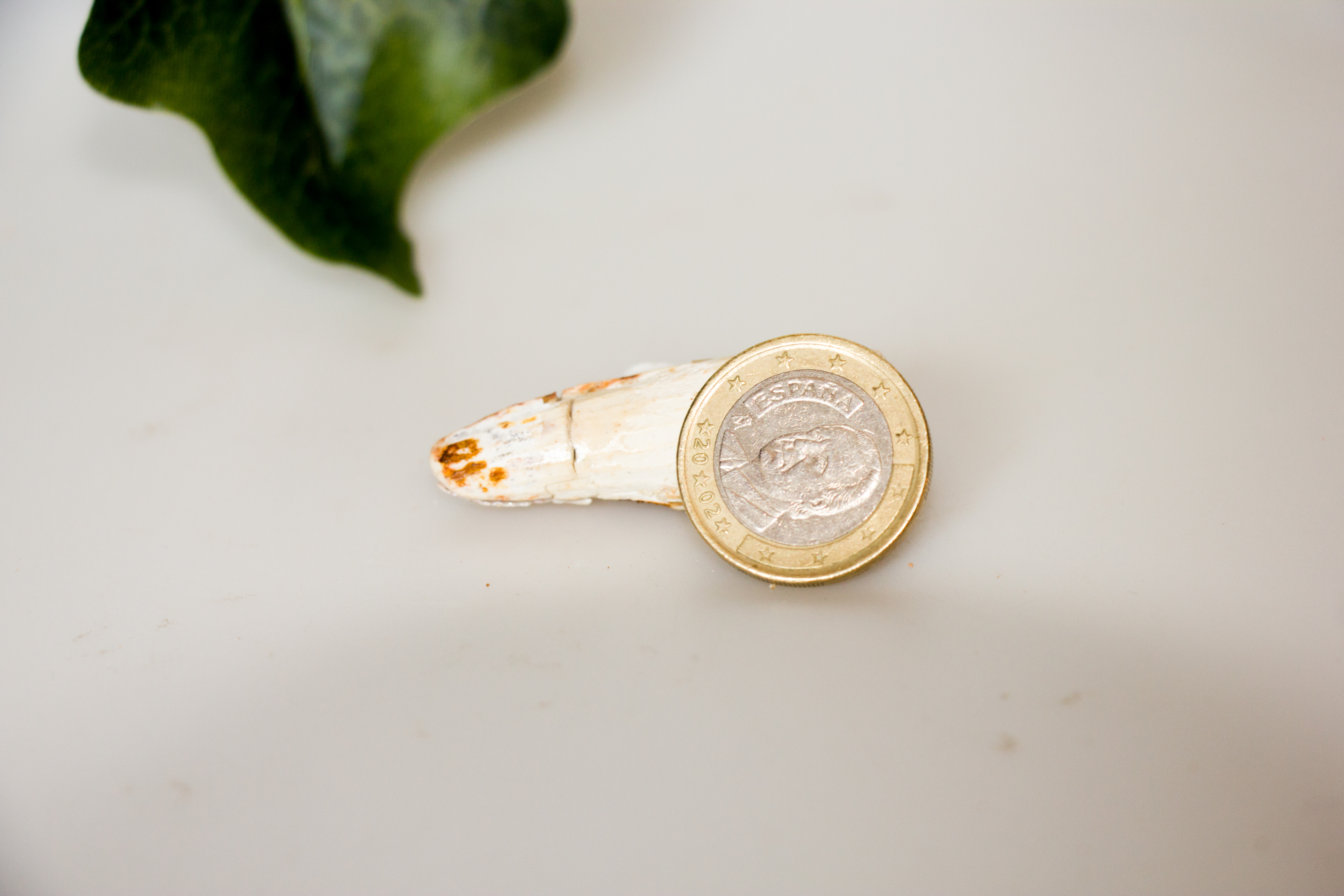 Dieser Spinozahn kam leider gebrochen bei uns an. Wir haben Ihn stabilisiert und wieder zusammengefügt.