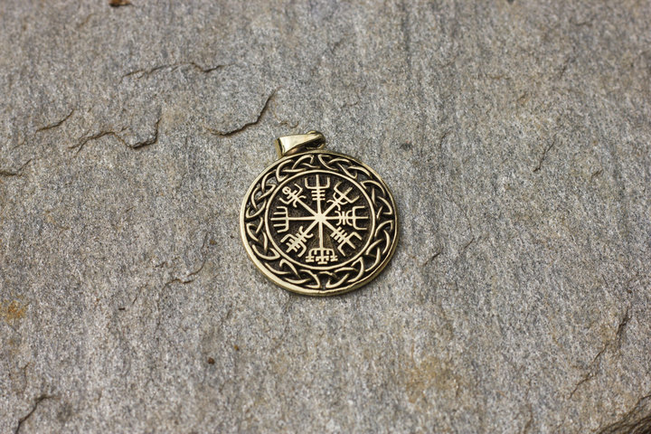 Vegvesir Schmuck Anhänger - WINRAR - ø3 cm - Wikinger Kompass mit Knotenmuster - Bronze