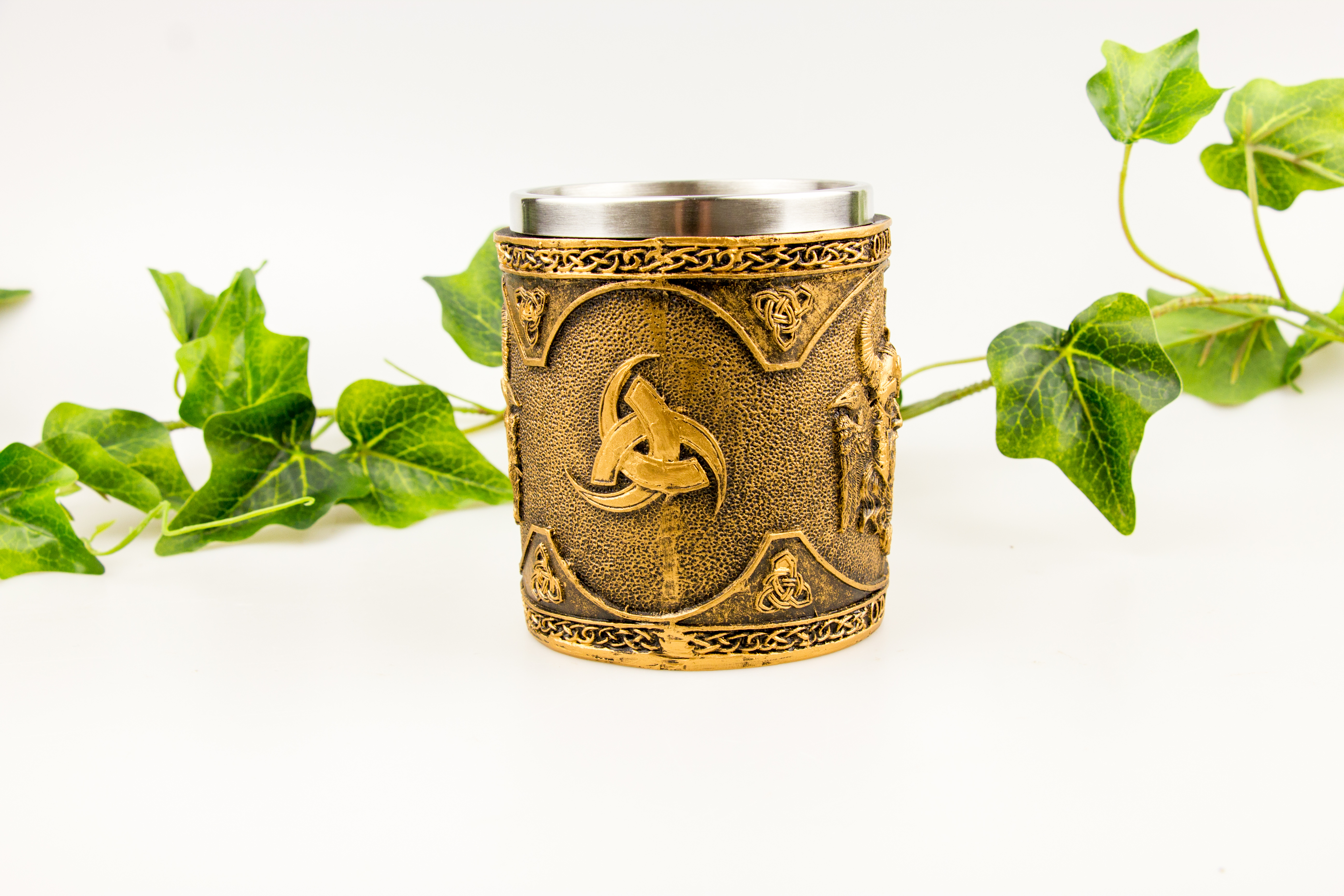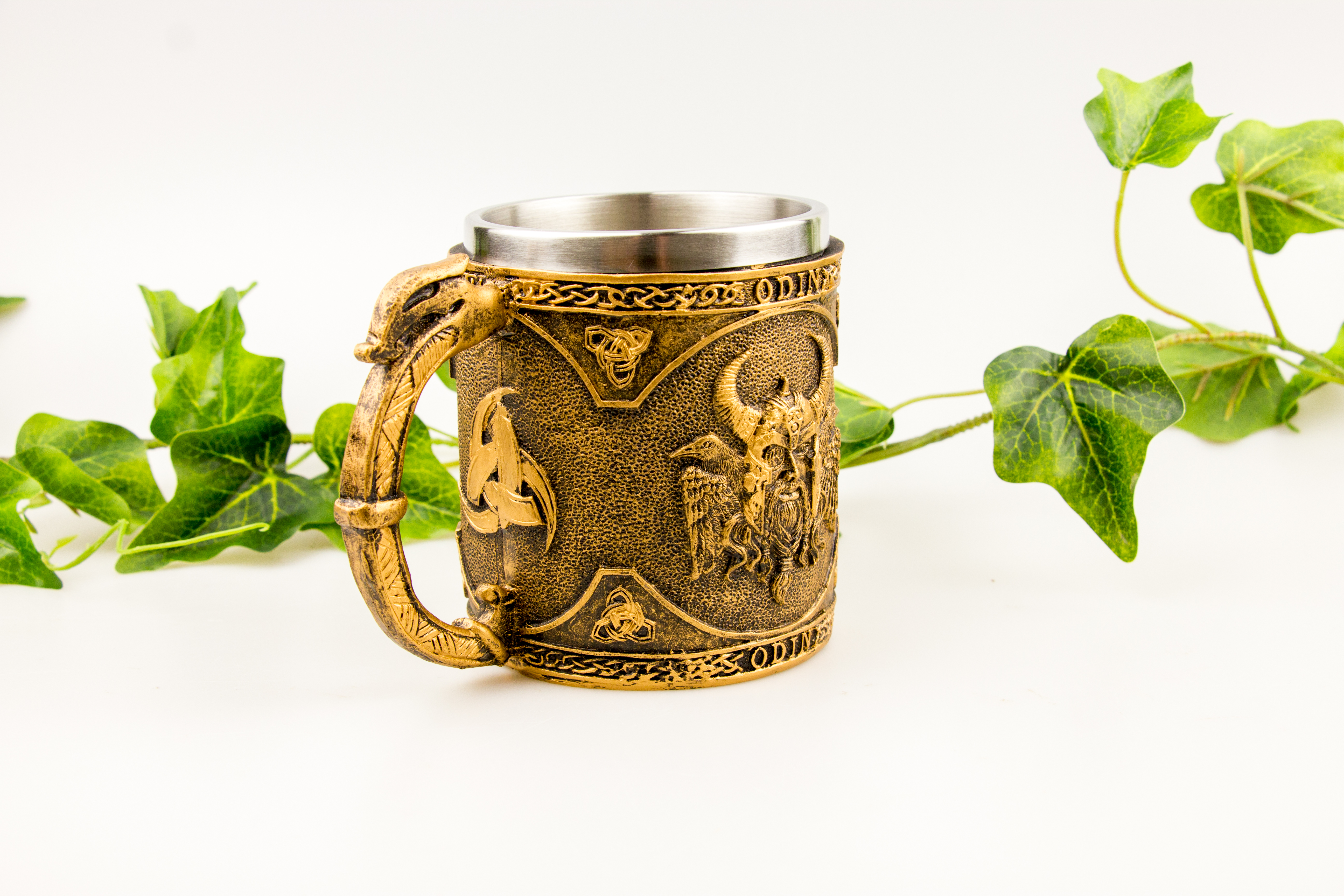 Produktinformationen "Wikinger Becher ODIN mit Hugin und Munin - aus Resin"